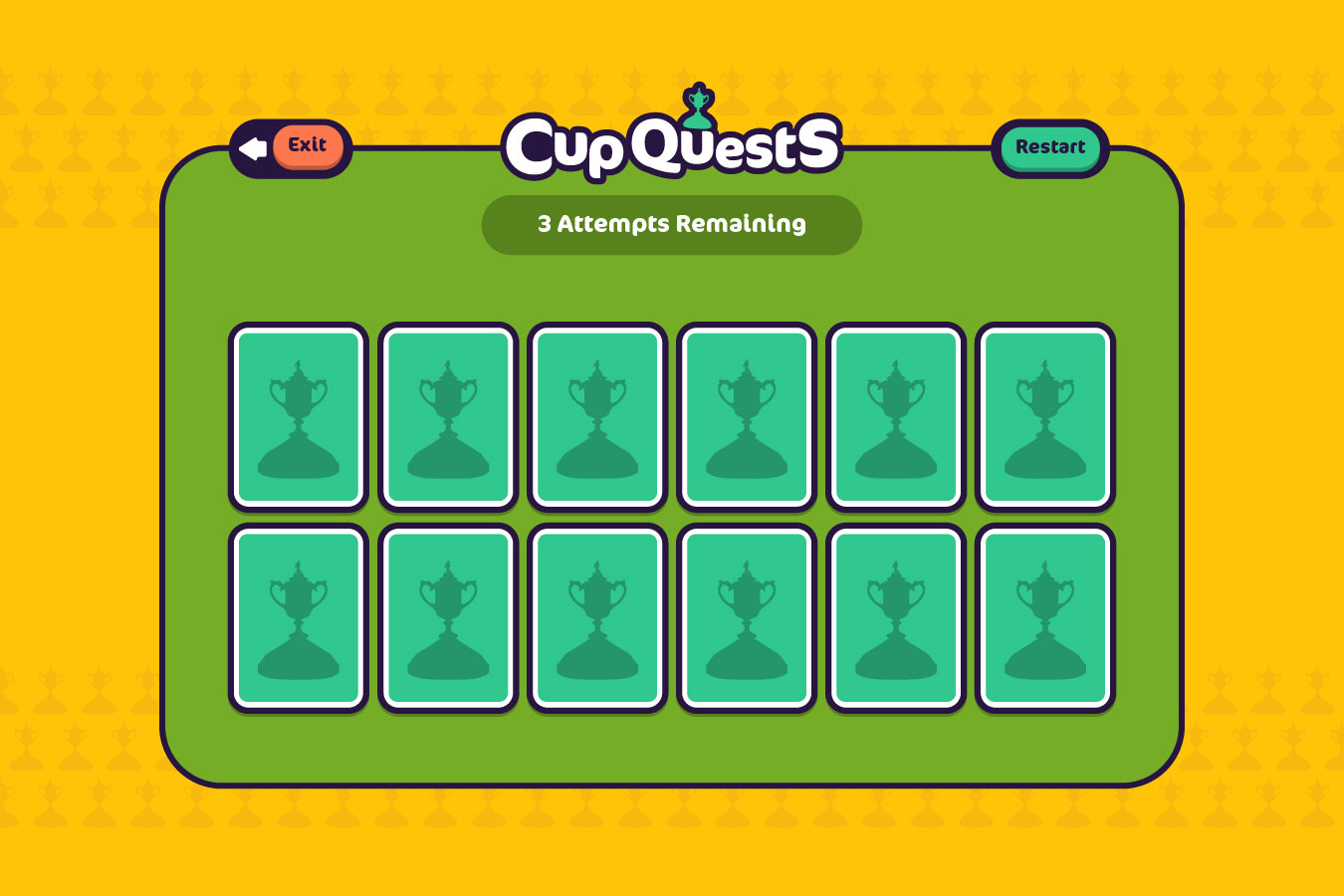 Cup quests was a small series of games that formed part of an exhibition celebrating the history of the Scottish Cup. The exhibition took place within the Scottish Football History Museum inside Hampden Stadium in Glasgow. The games ran on a very dated touchscreen PC. This led to some technical challenges and design decisions that accommodated the dated tech.