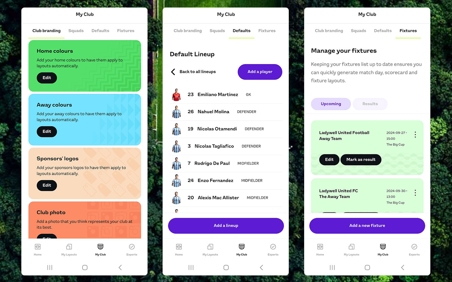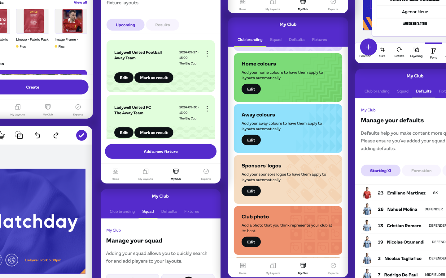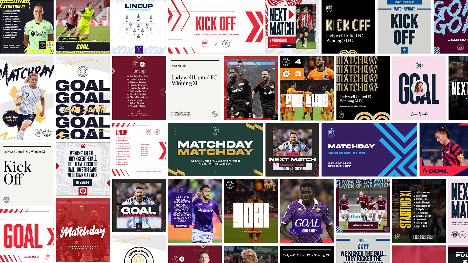 Terrace began as a small side-project and blossomed into a platform used by more than 600 football clubs across the world. The platform allows clubs of all sizes to access an instant library of branded graphics that tailor themselves to suit their club. Clubs add their club branding once, then every layout they open adapts to suit their club. I built Terrace using a vanilla HTML, CSS, JS & PHP stack.